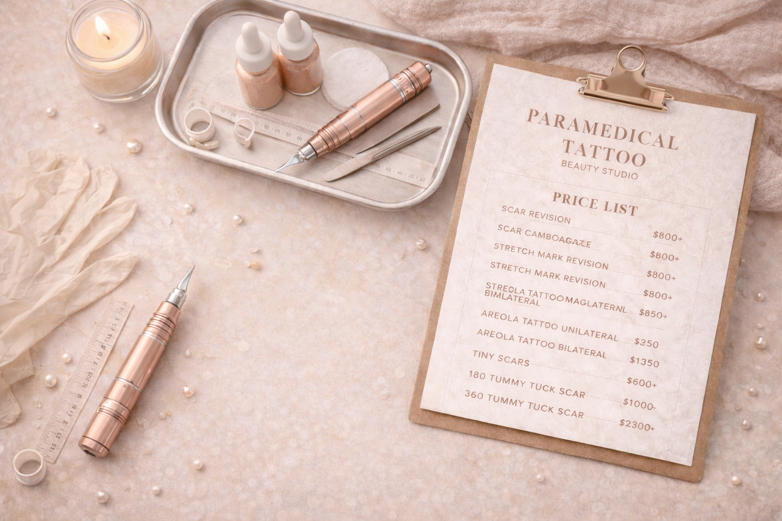 Instead of a generic price list, this layout reflects the types of treatments commonly provided in paramedical tattoo studios, helping your pricing sheet feel more aligned with your specialized services.